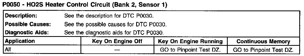 P0050 - HO2S Heater Control Circuit (Bank 2, Sensor 1):