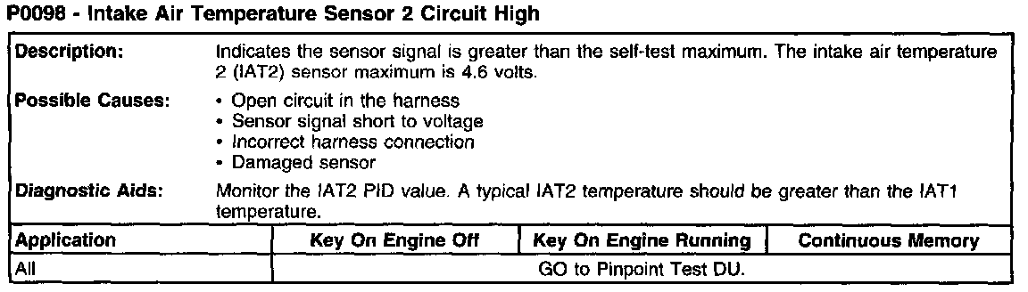 P0098 - Intake Air Temperature Sensor 2 Circuit High: