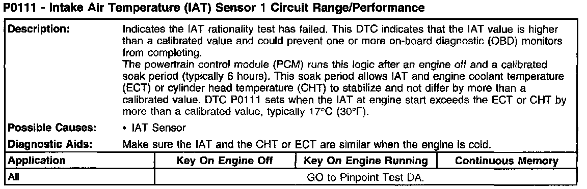 P0111 - Intake Air Temperature (IAT) Sensor 1 Circuit Range/Performance: