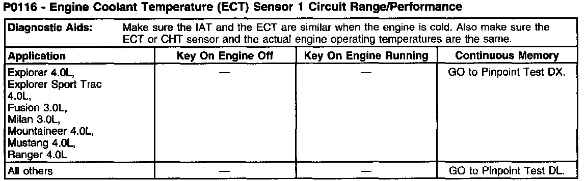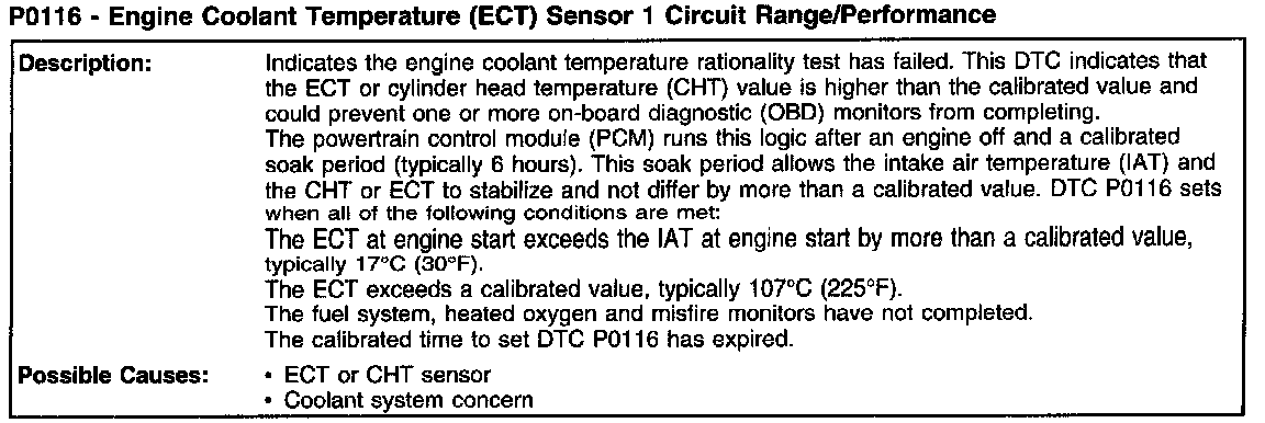 P0116 - Engine Coolant Temperature (ECT) Sensor 1 Circuit Range/Performance (Part 2):