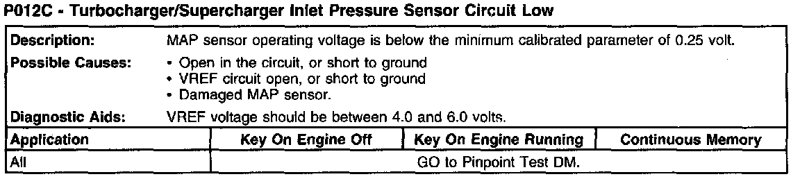 P012C - Turbocharger/Supercharger Inlet Pressure Sensor Circuit Low: