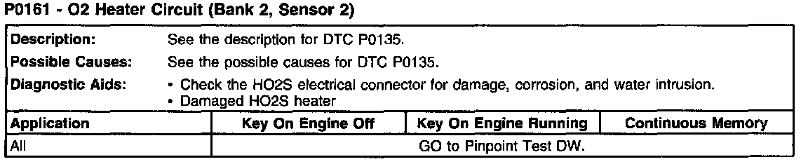 P0161 - O2 Heater Circuit (Bank 2, Sensor 2):