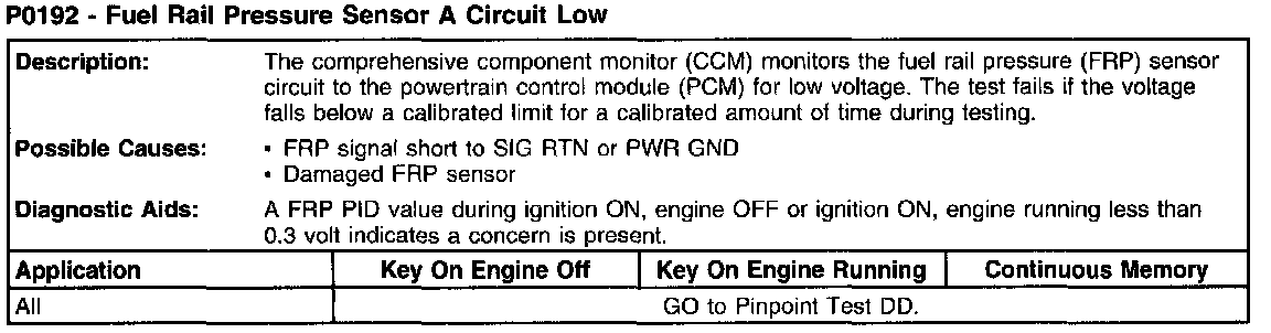 P0192 - Fuel Rail Pressure Sensor A Circuit Low: