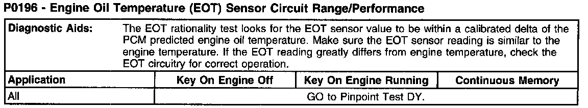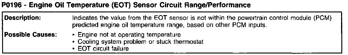 P0196 - Engine Oil Temperature (EOT) Sensor Circuit Range/Performance (Part 2):