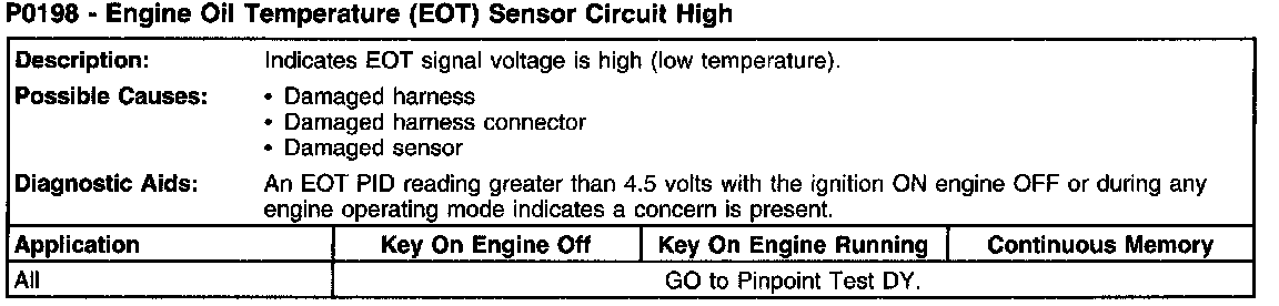 P0198 - Fuel Oil Temperature (EOT) Sensor Circuit High: