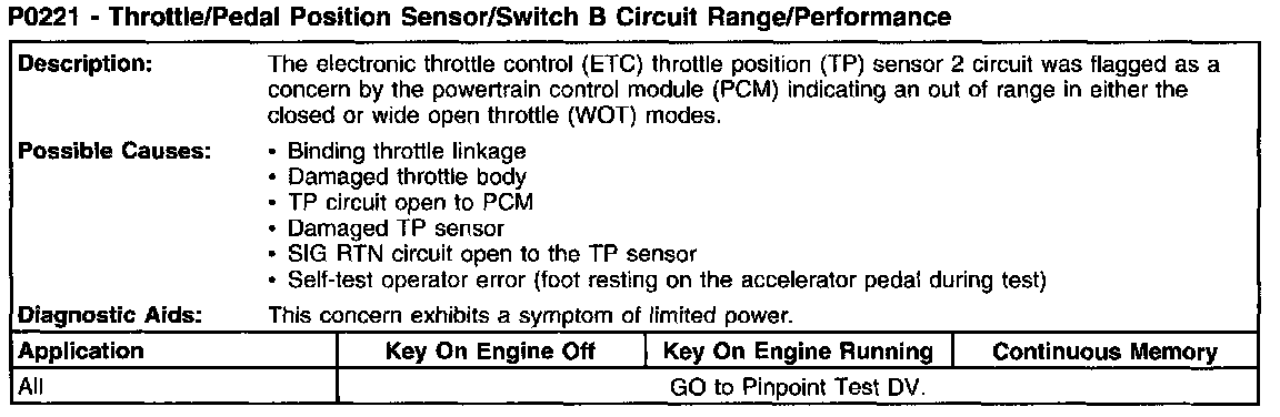 P0221 - Throttle/Pedal Position Sensor/Switch B Circuit Range Performance:
