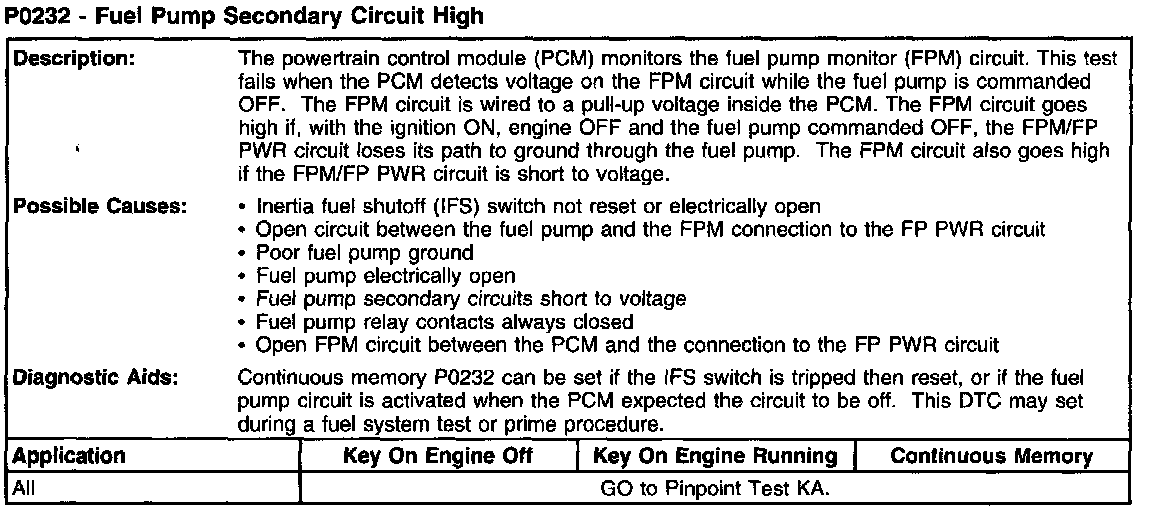 P0232 - Fuel Pump Secondary Circuit High: