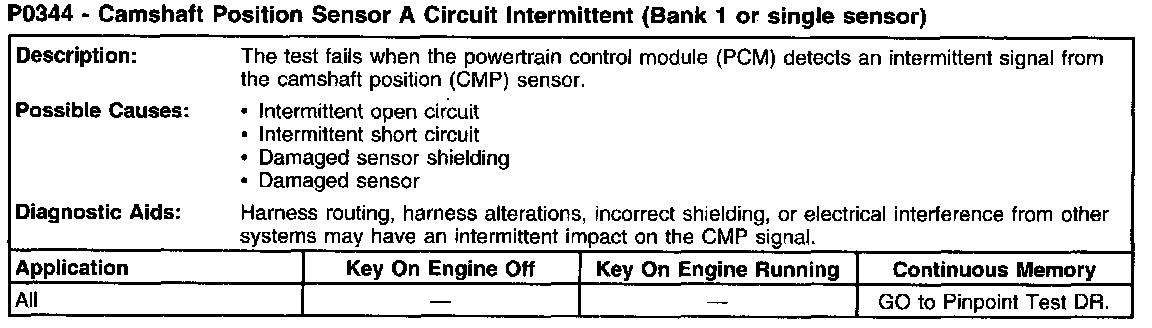 P0344 - Camshaft Position Sensor A Circuit Intermittent (Bank 1 or single sensor):
