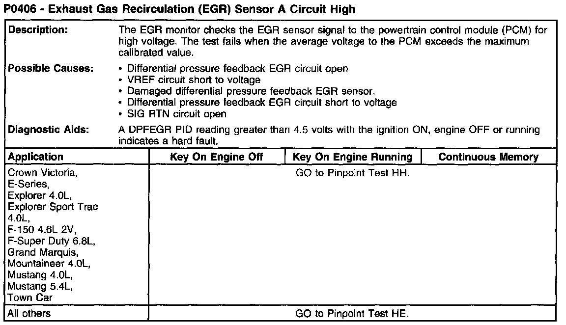 P0406 - Exhaust Gas Recirculation (EGR) Sensor A Circuit High: