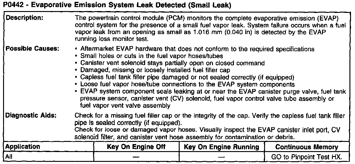 P0442 - Evaporative Emission System Leak Detected (Small Leak):