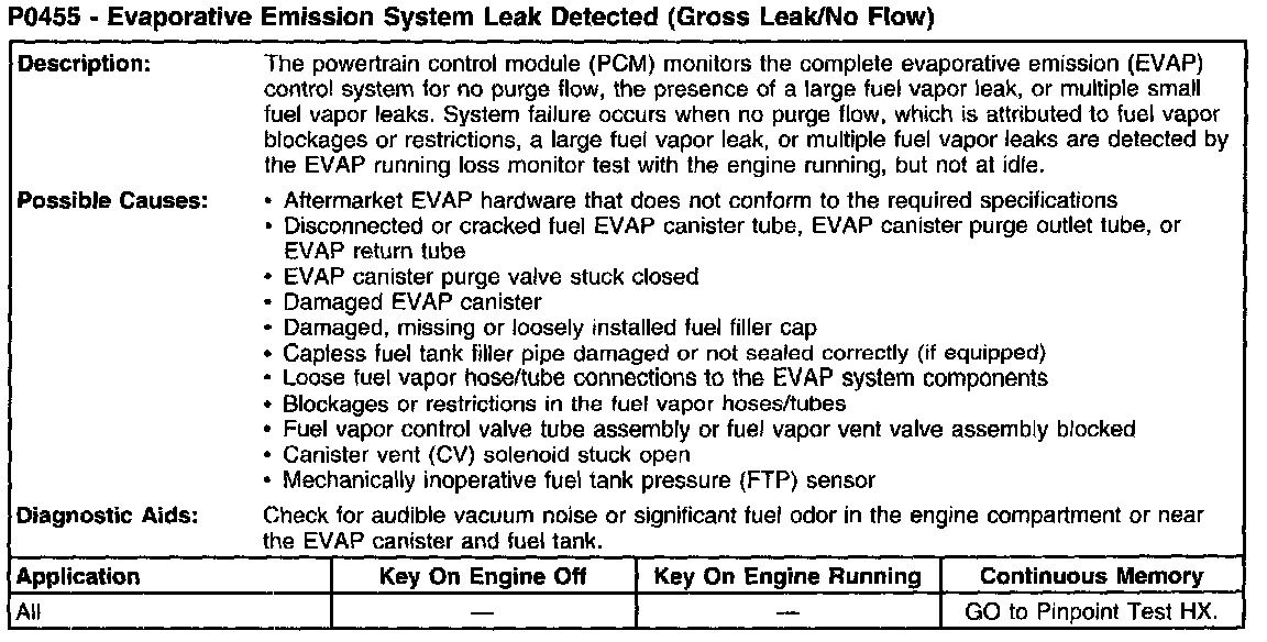 P0455 - Evaporative Emission System Leak Detected (Gross Leak/No Flow):