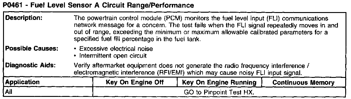 P0461 - Fuel Level Sensor A Circuit Range/Performance: