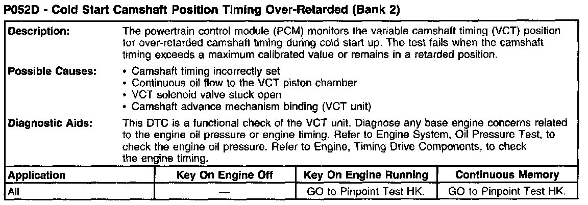 P052D - Cold Start Camshaft Position Timing Over-Retarded (Bank 2):
