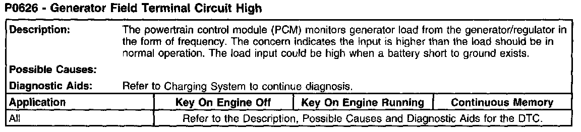 P0626 - Generator Field Terminal Circuit High: