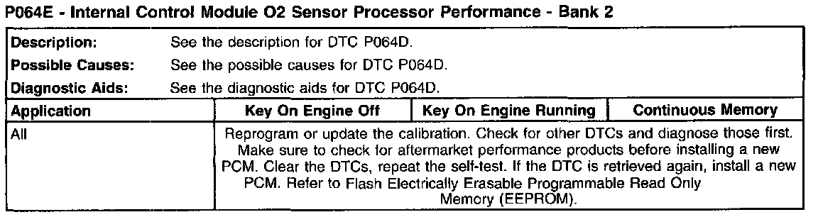 P064E - Internal Control Module O2 Sensor Processor Performance - Bank 2: