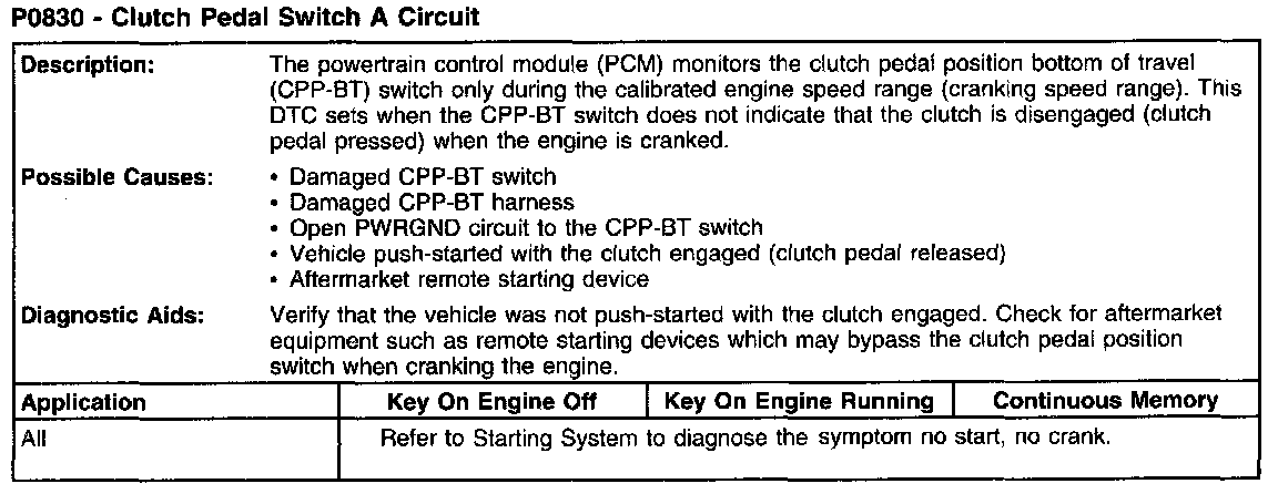 P0830 - Clutch Pedal Switch A Circuit: