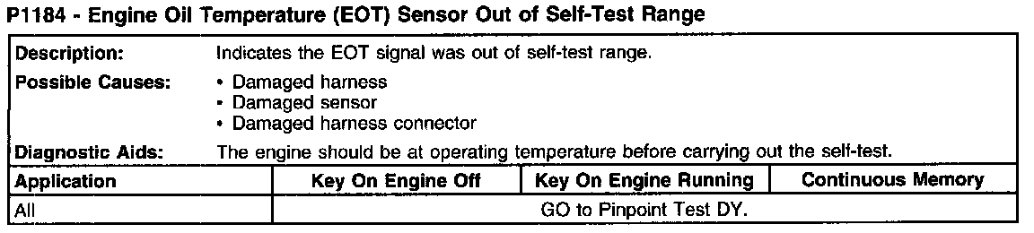 P1184 - Engine Oil Temperature (EOT) Sensor Out of Self-Test Range: