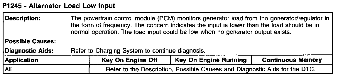 P1245 - Alternator Load Low Input: