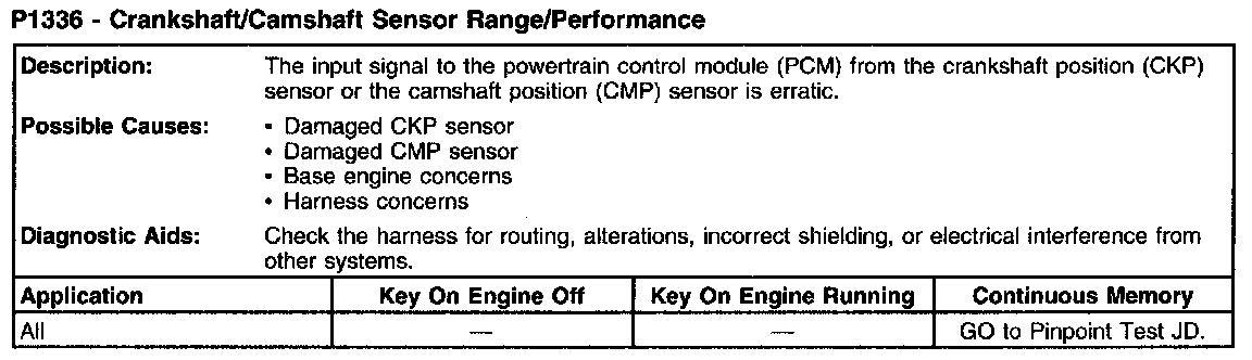 P1336 - Crankshaft/Camshaft Sensor Range/Performance: