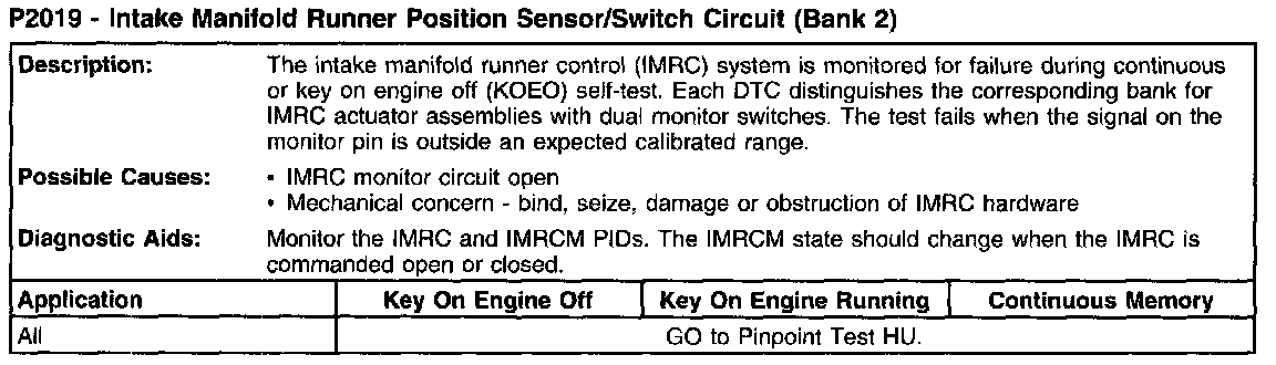 P2019 - Intake Manifold Runner Position Sensor/Switch Circuit (Bank 2):