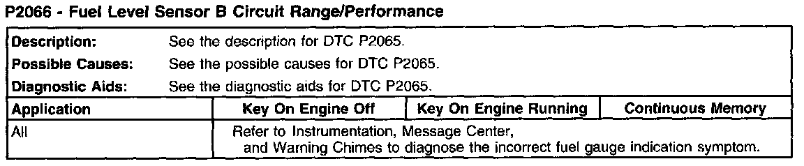 P2066 - Fuel Level Sensor B Circuit Range/Performance: