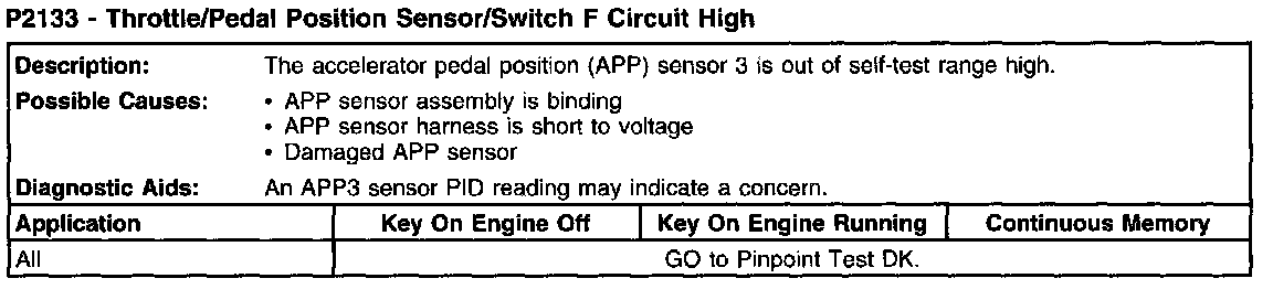 P2133 - Throttle/Pedal Position Sensor/Switch F Circuit High: