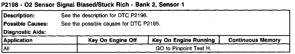 P2198 - O2 Sensor Signal Biased/Stuck Rich - Bank B, Sensor 1: