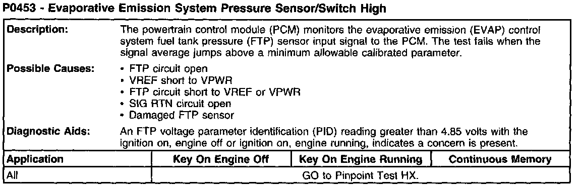 P0453 - Evaporative Emission System Pressure Sensor/Switch High: