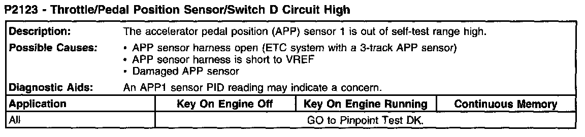 P2123 - Throttle/Pedal Position Sensor/Switch D Circuit High: