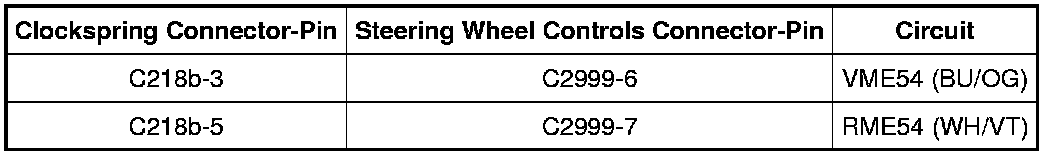 - For a concern with the VOICE, PHONE, or OK buttons, measure the voltage between the clockspring C218a-6, circuit VME54 (BU/OG), harness side and ground.