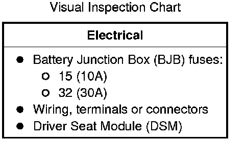 10. If no DTCs related to the concern are retrieved, GO to Symptom Chart. Driver Seat Module (DSM)