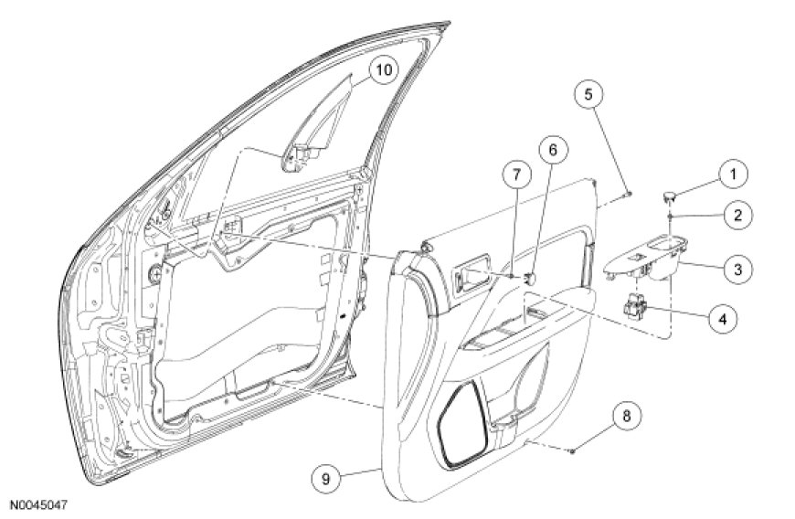 - Pull the front door trim panel outward to release the front door trim panel pin-type retainers.