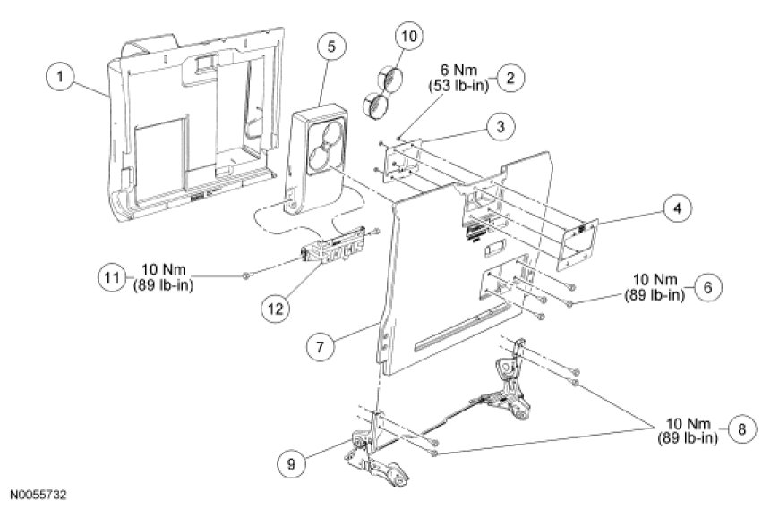 13. Remove the 4 striker-to-backrest frame nuts, backrest latch striker and support plate.