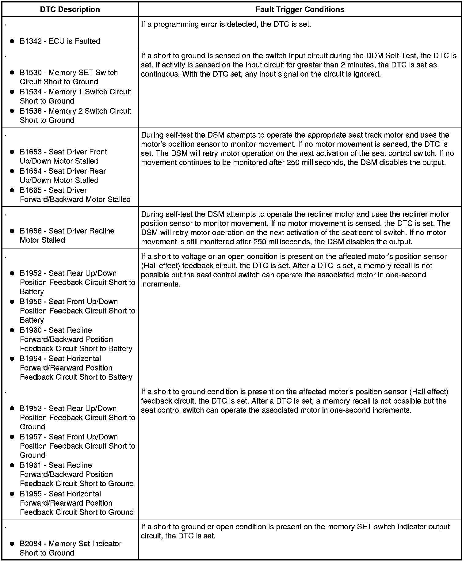 - Are any DSM or DDM DTCs retrieved or does the memory SET indicator fail to illuminate during the DDM Self-Test?