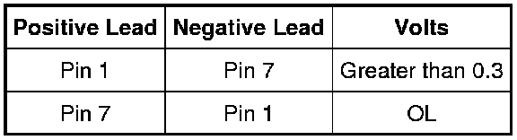 - Use the diode testing meter function to check the switch indicator and measure voltage between memory SET switch pins, component side using the following chart and preceding illustration:
