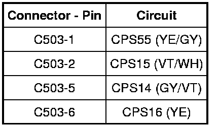 K7 CHECK CIRCUITS CPS14 (GY/VT), CPS15 (VT/WH), CPS16 (YE) AND CPS55 (YE/GY) FOR A SHORT TO VOLTAGE