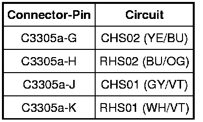 - Measure voltage between DCSM C3305a, harness side and ground using the following chart: