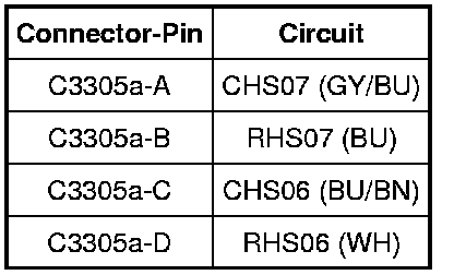 - Measure voltage between DCSM C3305a, harness side and ground using the following chart: