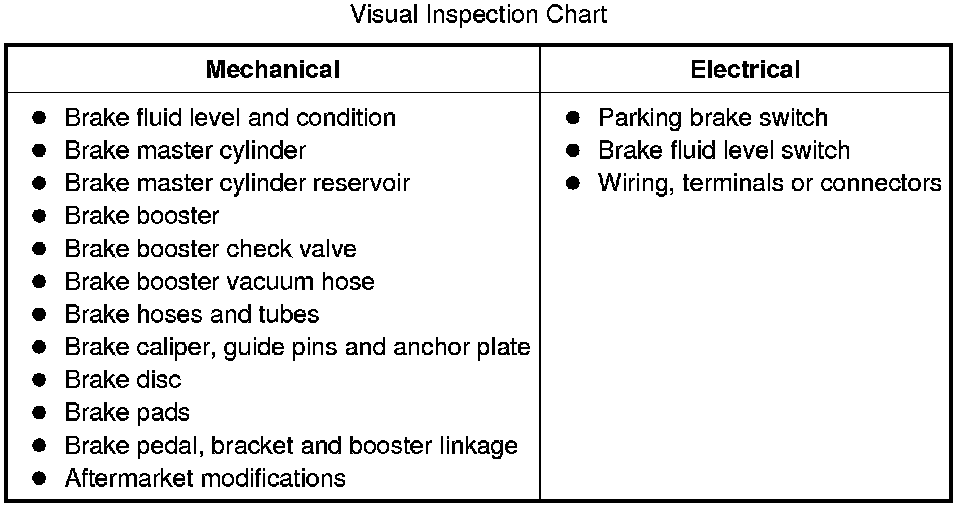 - For ABS concerns, refer to Antilock Brakes / Traction Control Systems. Testing and Inspection