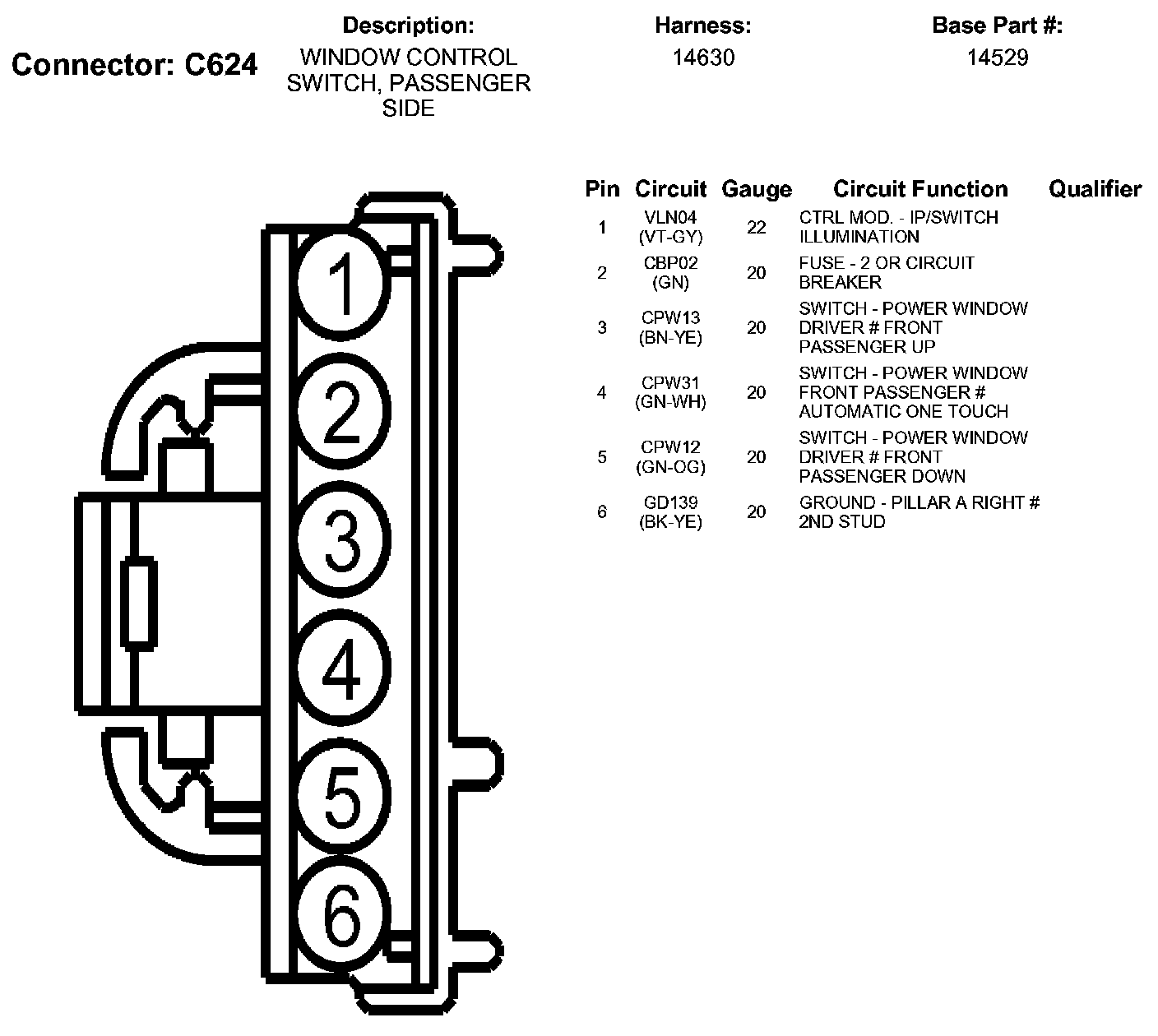 Window Control Switch, Passenger Side