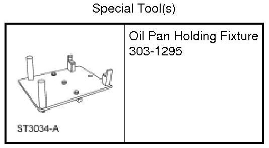 2. NOTICE: The Oil Pan Holding Fixture must be carefully aligned to the mounting bosses on the oil pan. Failure to follow these instructions may result in damage to the oil pan.