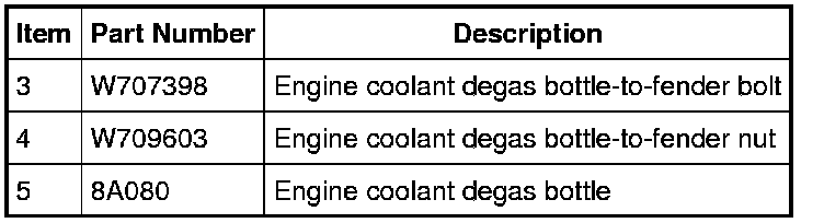 5. Remove the nut, bolt and position the engine coolant degas bottle aside.