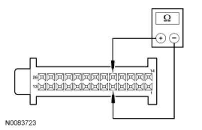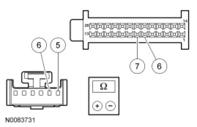 - Measure the resistance between HVAC module - EATC C228a-6, circuit CH234 (YE/GN), harness side and HVAC module - EATC C228a-7, circuit CH233 (VT/BN), harness side.