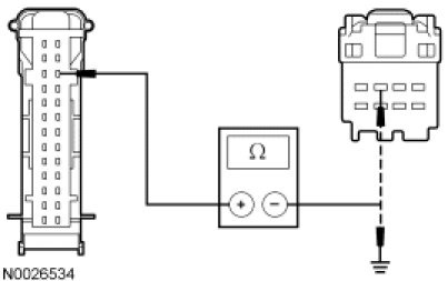 - Measure the resistance between the IC C220-11, circuit RMC27 (WH/BN), harness side and the message center switch C253-2, circuit RMC27 (WH/BN), harness side; and between the IC C220-11, circuit RMC27 (WH/BN), harness side and ground.
