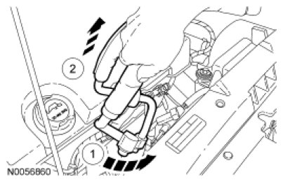 NOTICE: Do not stress or bend the aluminum lines on the compressor manifold and tube assembly to facilitate removal. Bending or squeezing the lines together may damage the welds and lead to premature failure of the line.