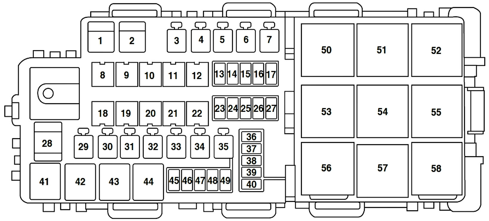 ALLDATA Editor's Note: Ford identifies this one component by 2 different names. Users have reported success comparing these images to determine Application/ID or Location of Fuses and Relays with the Power Distribution Box / Battery Junction Box (BJB).
