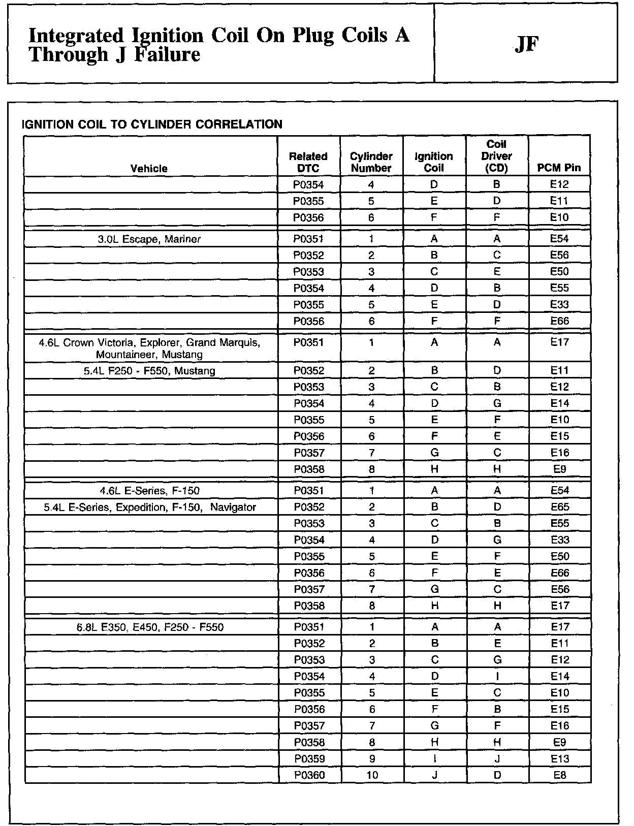 JF - Integrated Ignition Coil On Plug Coils A Through J Failure