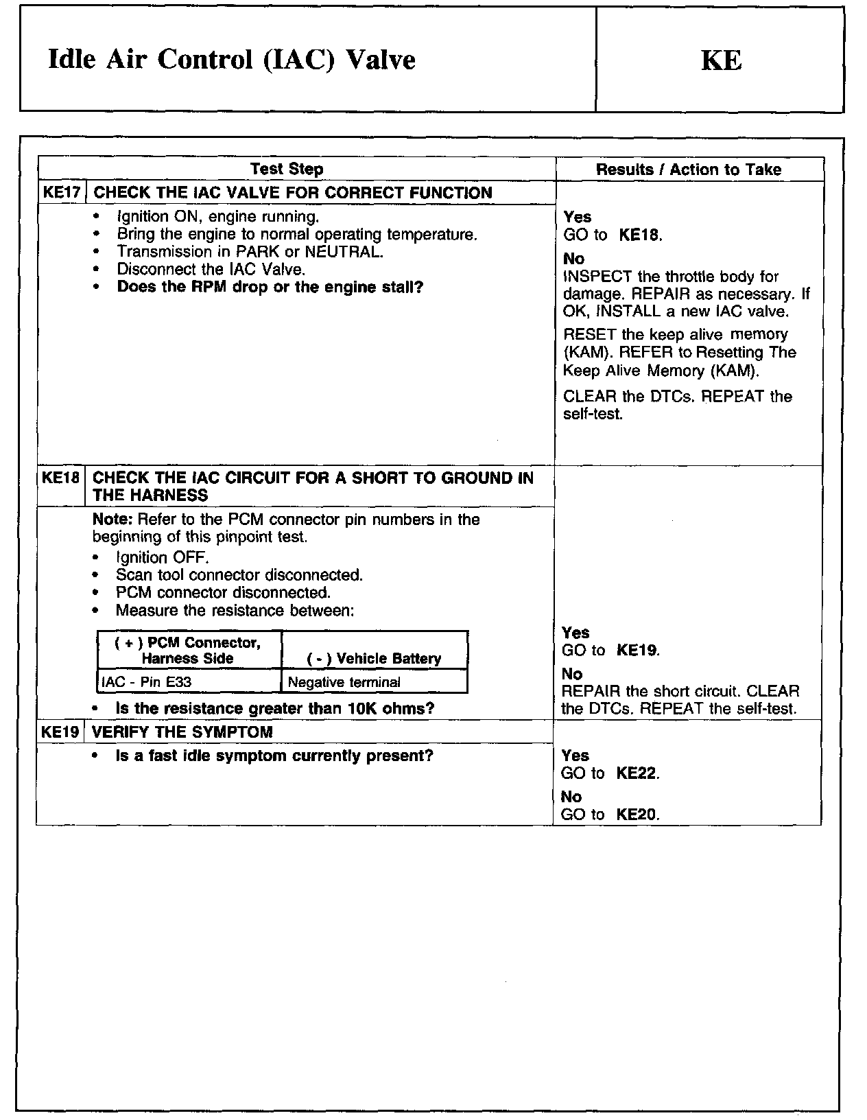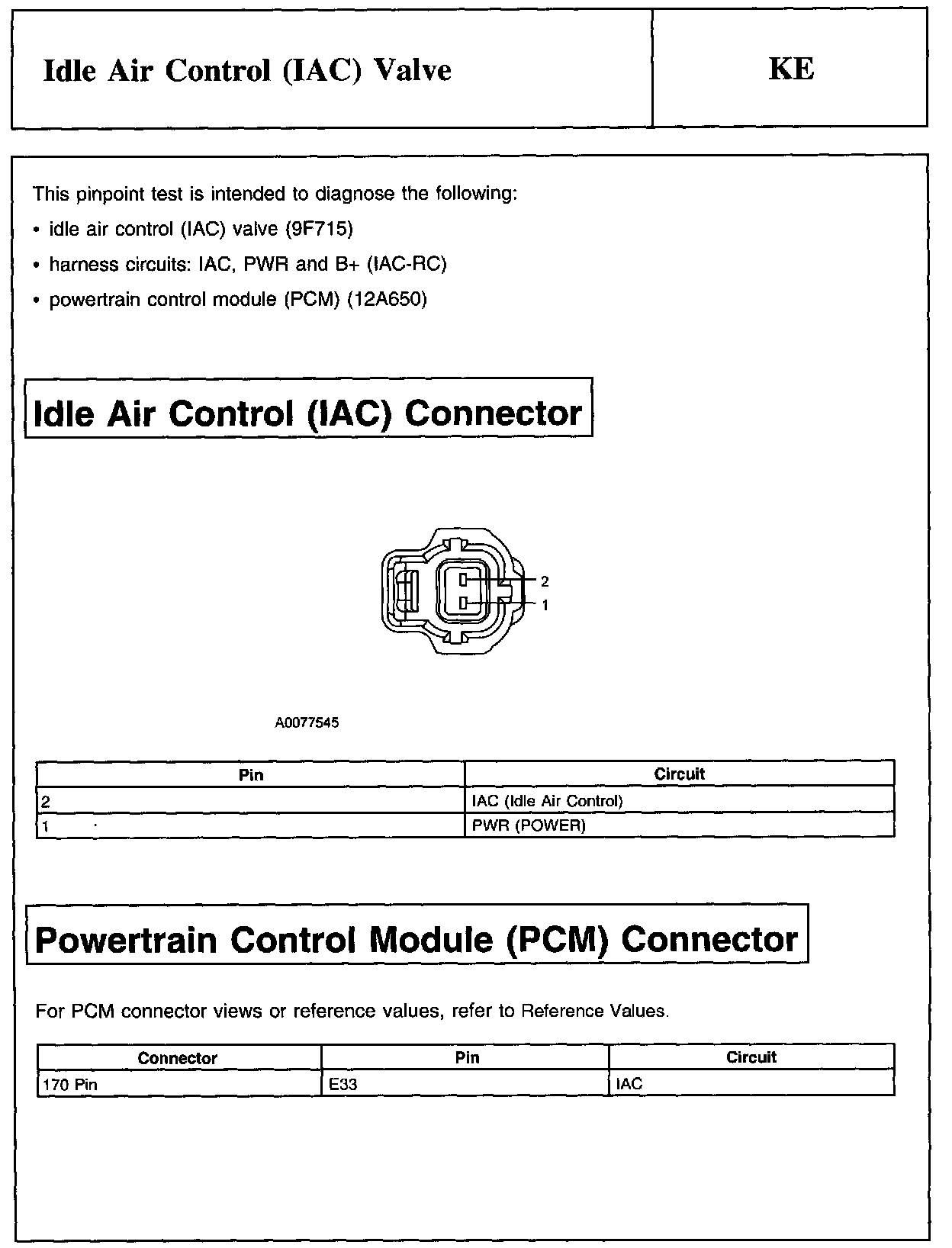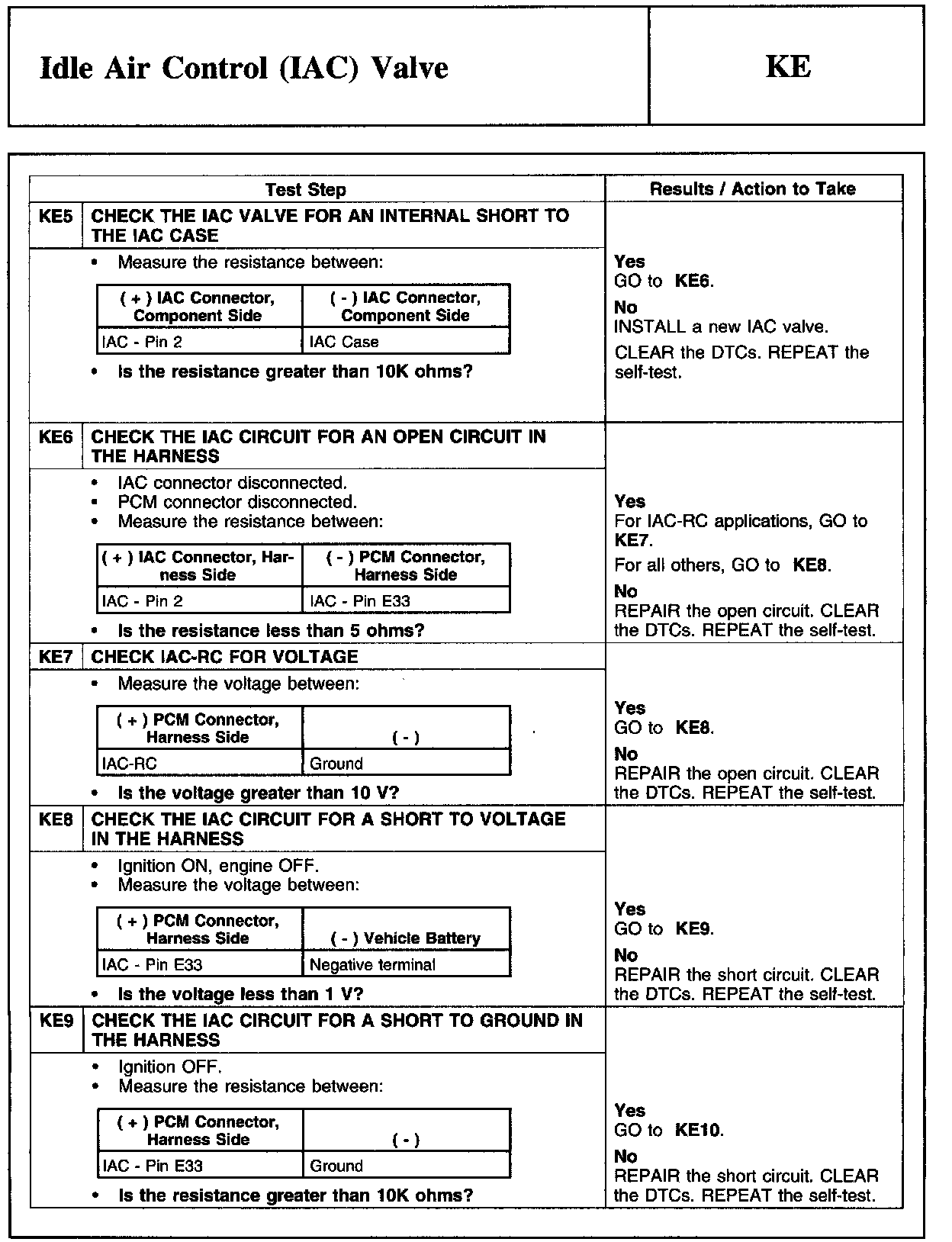 PINPOINT TEST KE: IDLE AIR CONTROL (IAC) VALVE