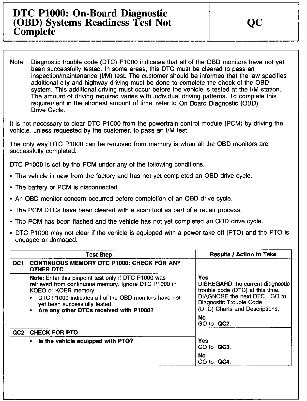 QC - DTC P1000: On-Board Diagnostic (OBD) Systems Readiness Test Not Complete