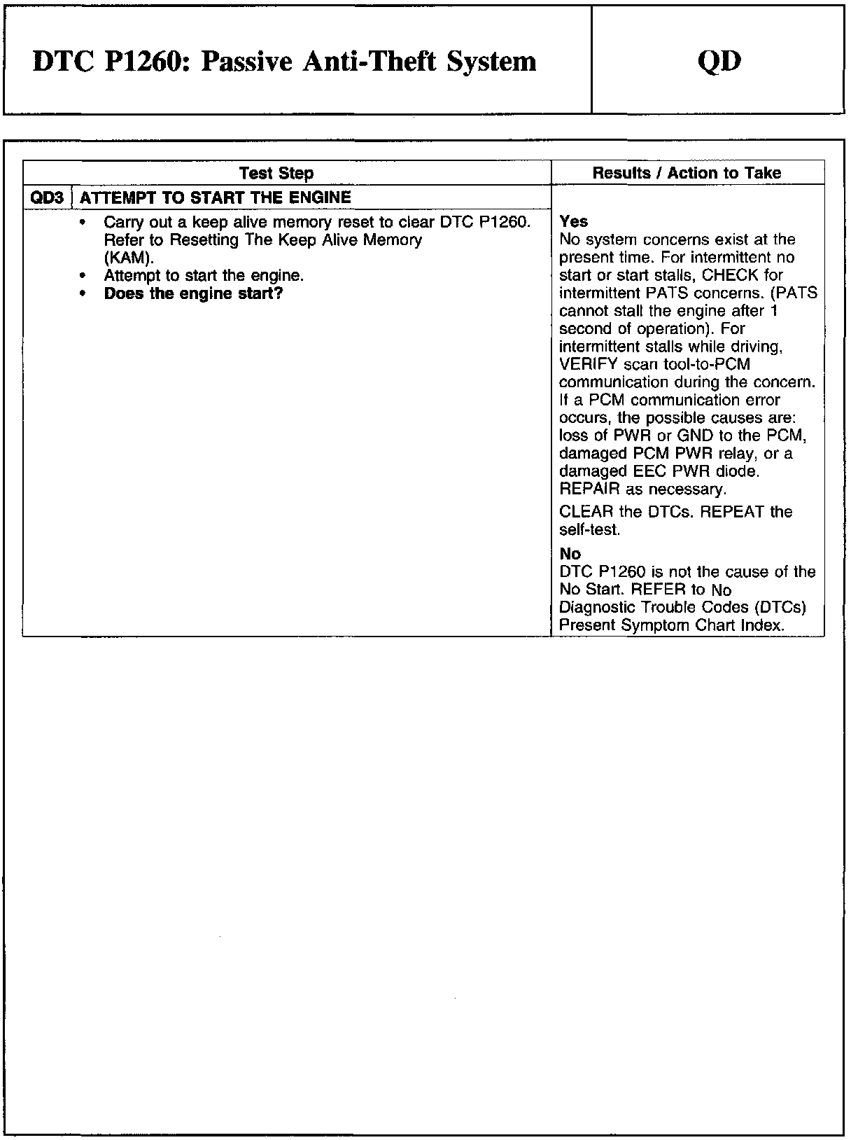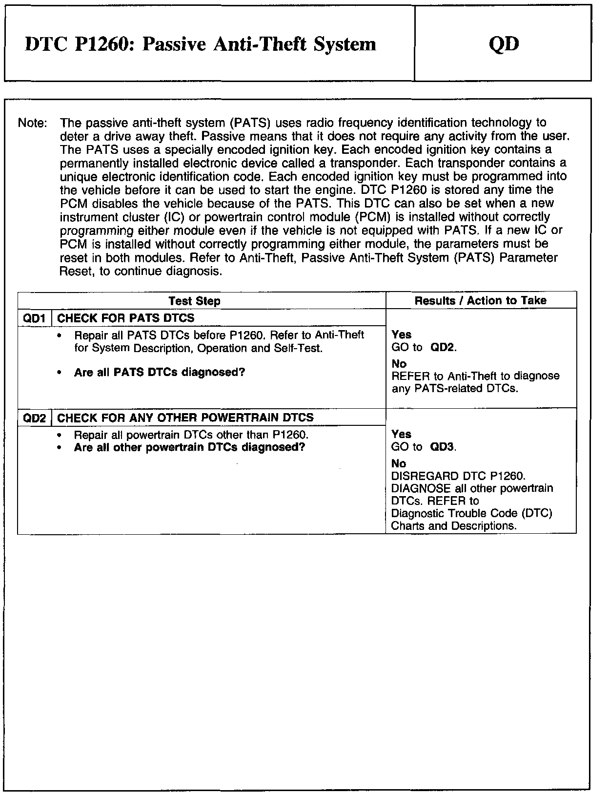 PINPOINT TEST QD: DTC P1260: PASSIVE ANTI-THEFT SYSTEM